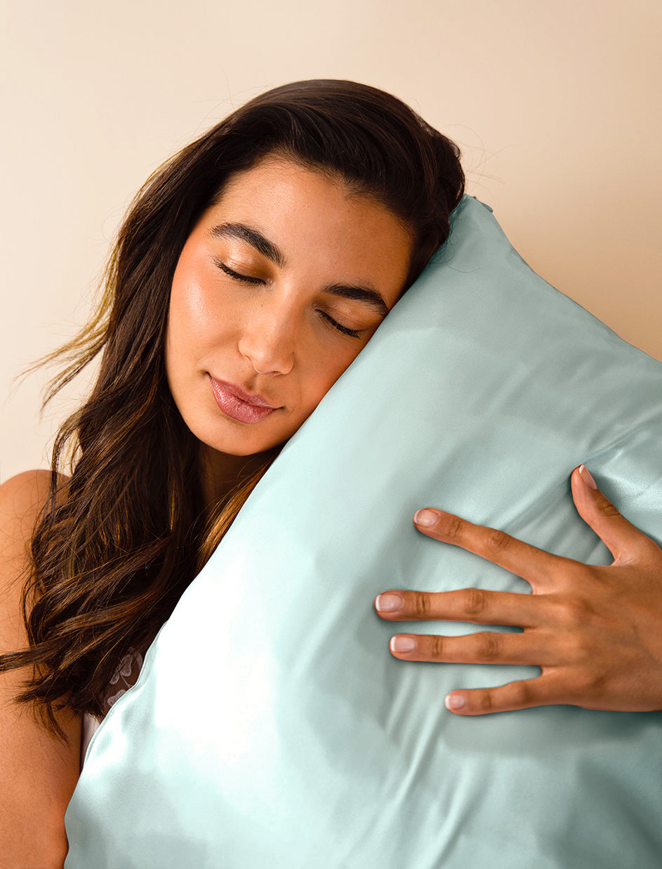 Federa in seta di gelso 22 mm blu menta – 100% naturale – Antirughe, preserva l’idratazione e limita la rottura dei capelli – Lusso & comfort notturno