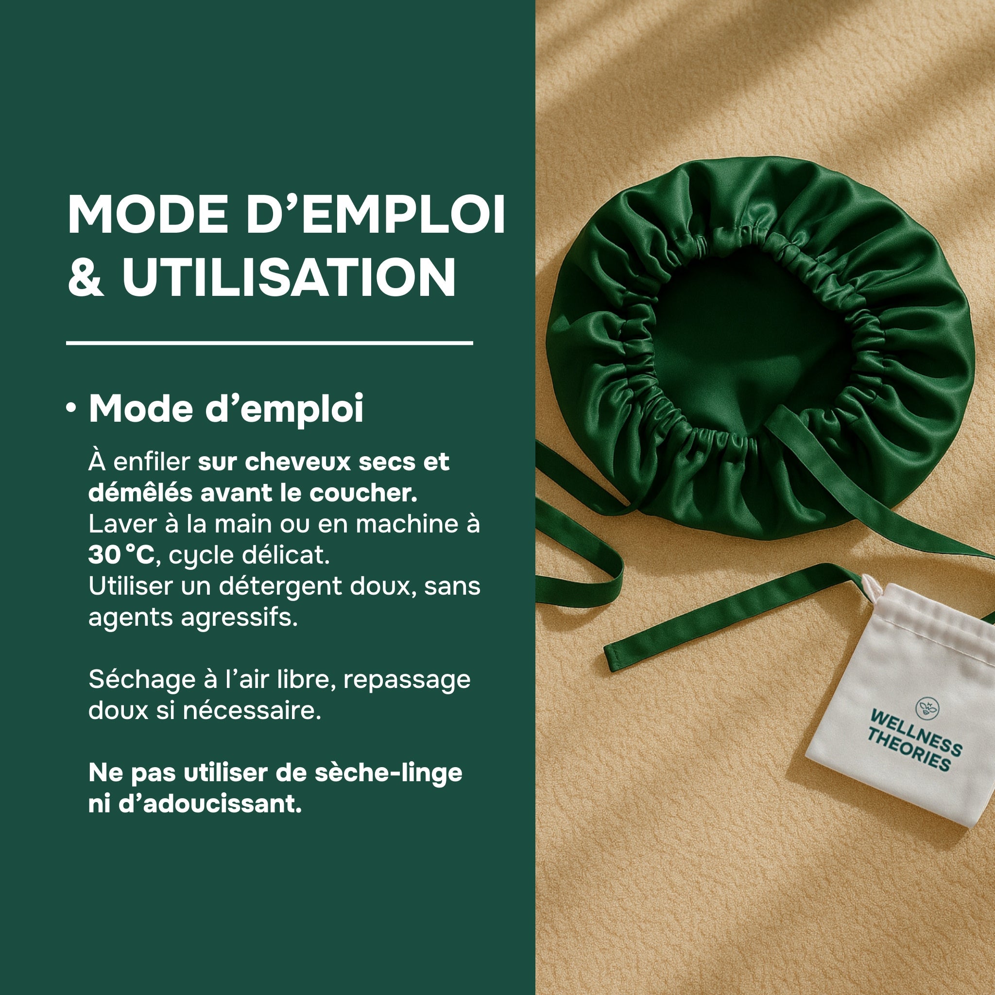 Nachtritueel voor haar en slaap – Groene zijden muts en masker