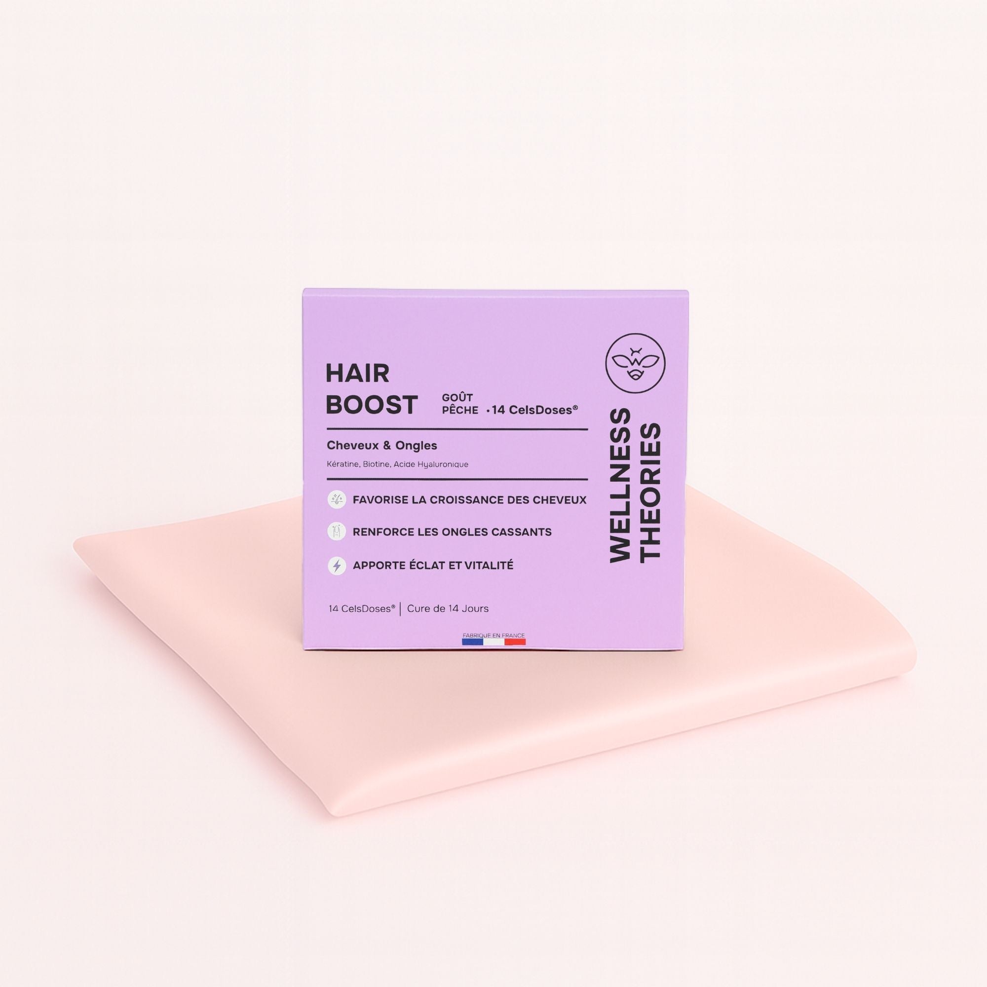 Wie zou het moeten gebruiken? Mensen die de schoonheid en vitaliteit van hun haar willen versterken terwijl ze hun haarvezel 's nachts verzorgen. Dit pakket combineert een kussensloop van moerbeizijde, ideaal om wrijving te verminderen, breuk te beperken en vocht te behouden, met 14 HAIR BOOST shots om te drinken, rijk aan keratine, biotine, zink en vitaminen. Een krachtig duo om de groei, kracht en glans van het haar te bevorderen, dag na dag, van de wortels tot de punten.