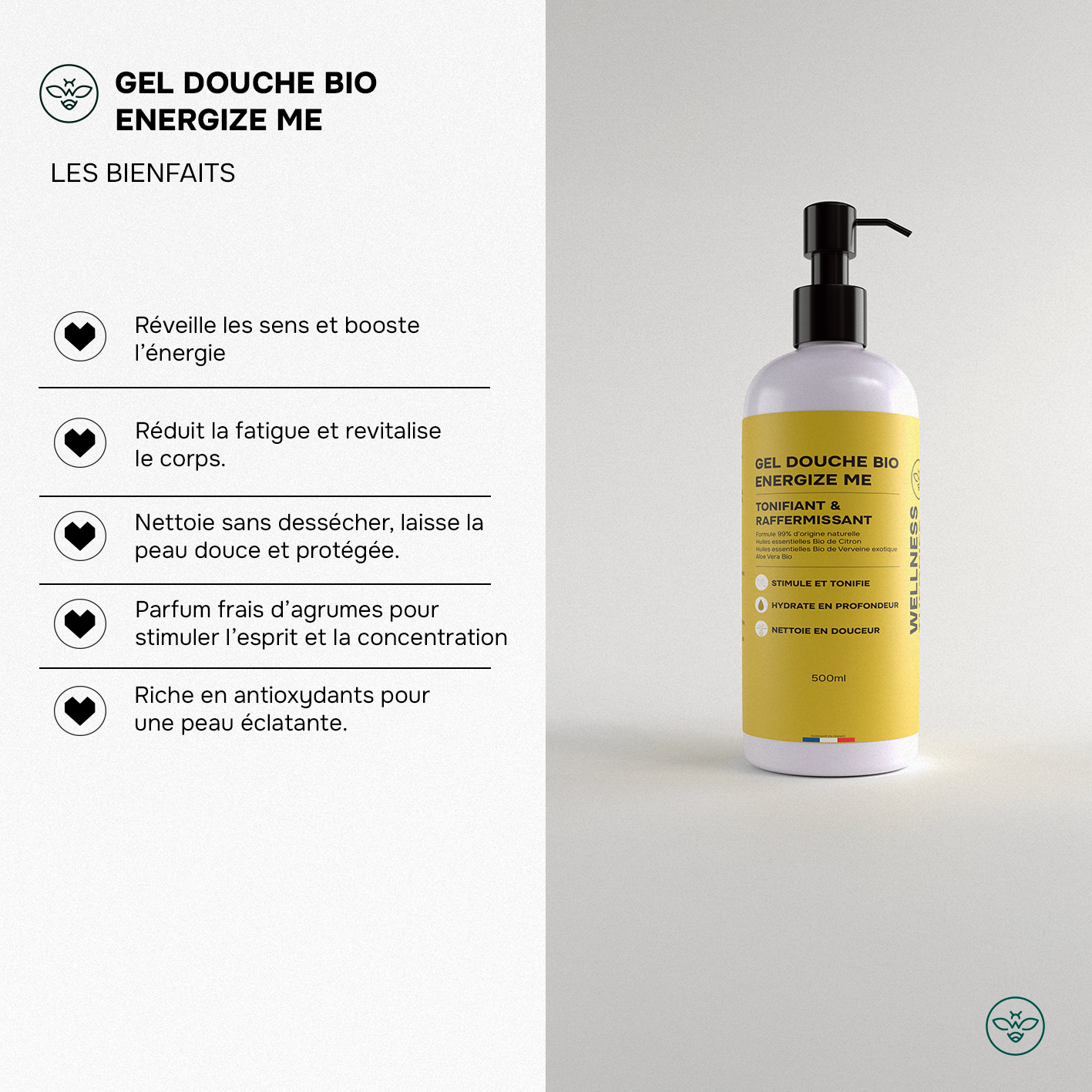 ENERGIZE ME – Verkwikkende bio-douchegel – Directe energie & frisheid – 99% natuurlijk – 500 ml – Made in France
