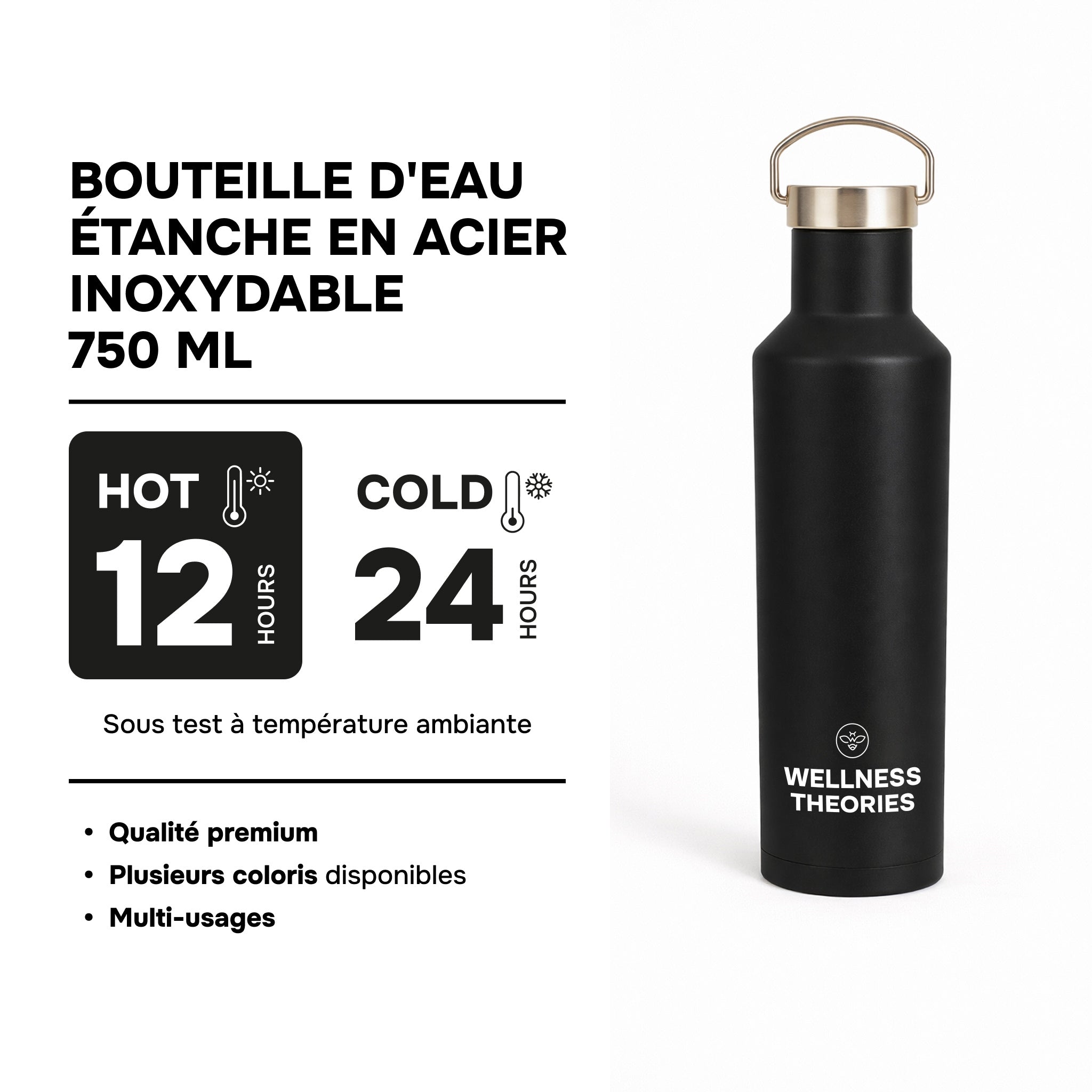 Alliez hydratatie, elegantie en welzijn met de Wellness Theories thermosfles 750 ml, ideaal om u de hele dag te vergezellen.