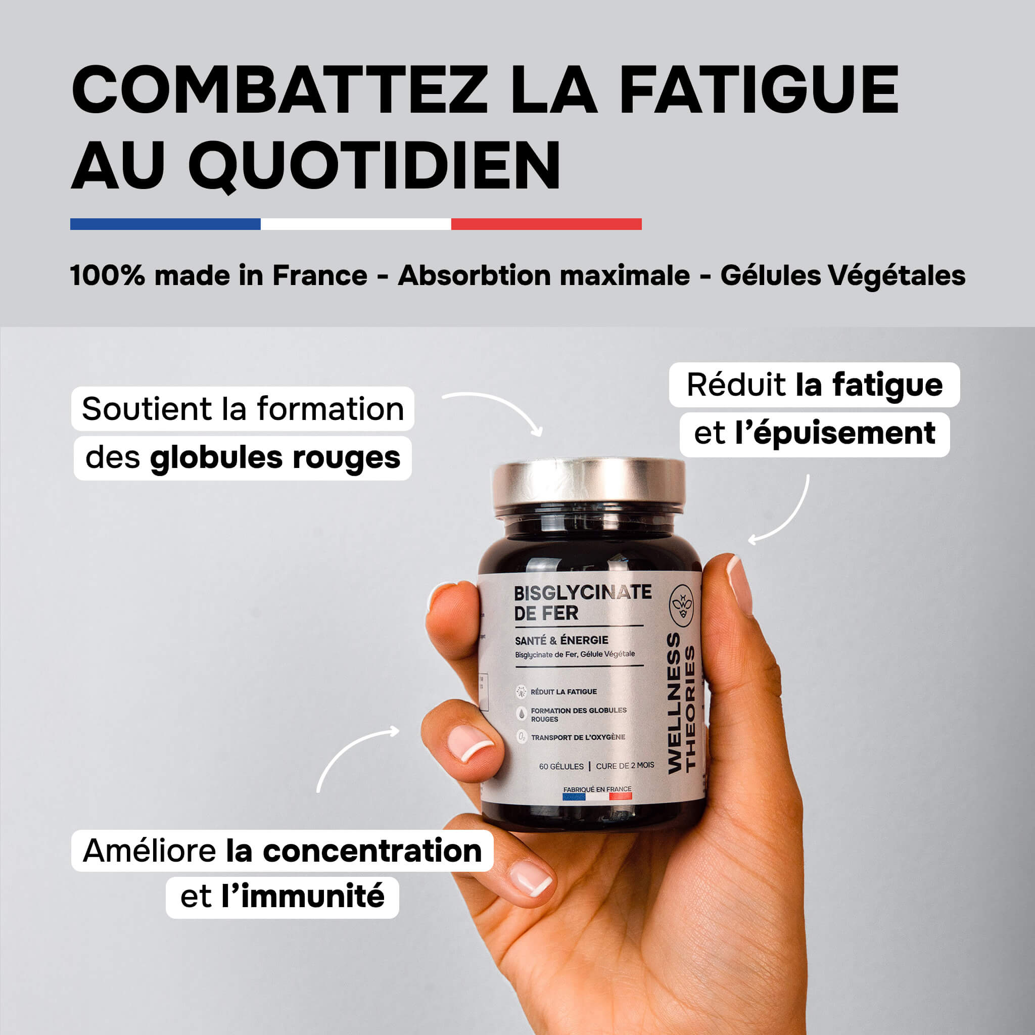 IJZERBISGLYCINAAT – Energie, immuunsysteem & minder vermoeidheid – 60 vegan capsules – 2-maandenkuur – Made in France