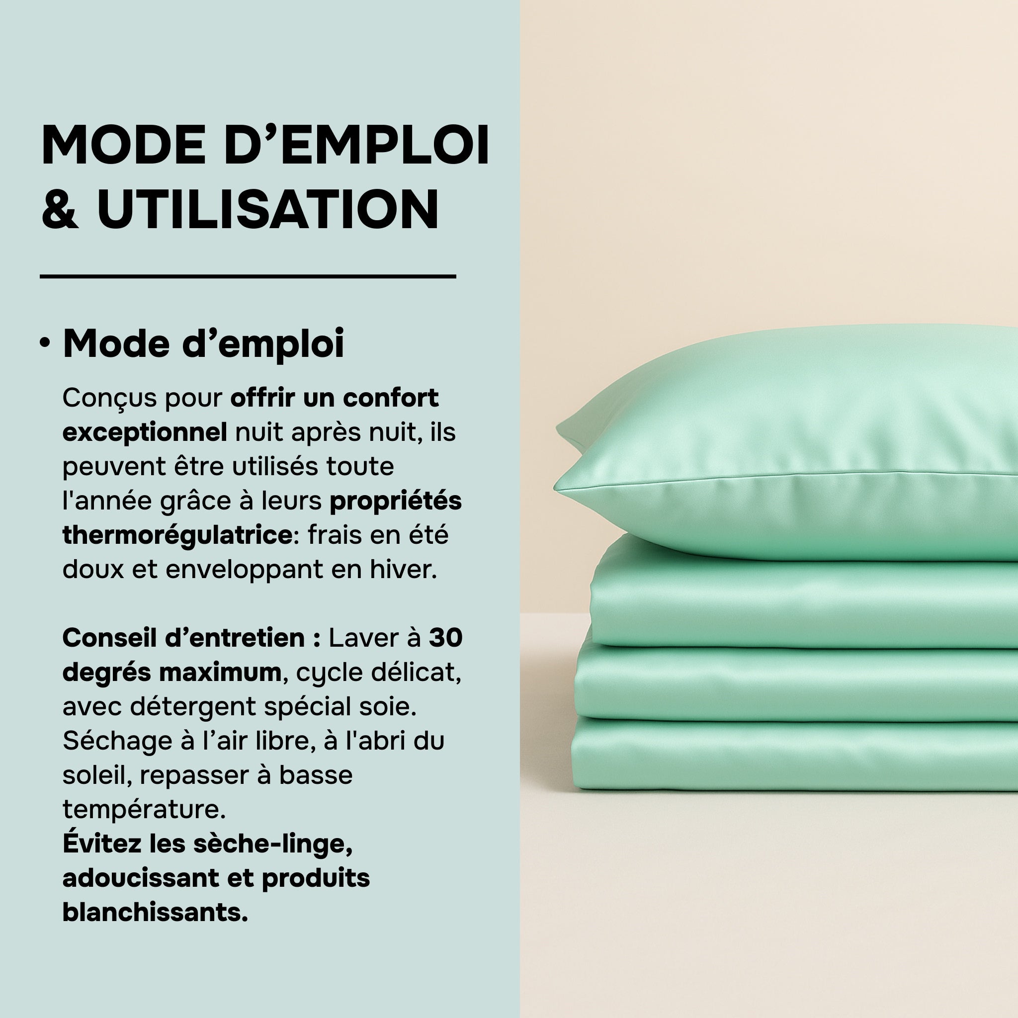 Gemaakt van 100% natuurlijke moerbeizijde, is dit luxe beddengoed zacht, hypoallergeen en van nature respectvol voor huid en haar.