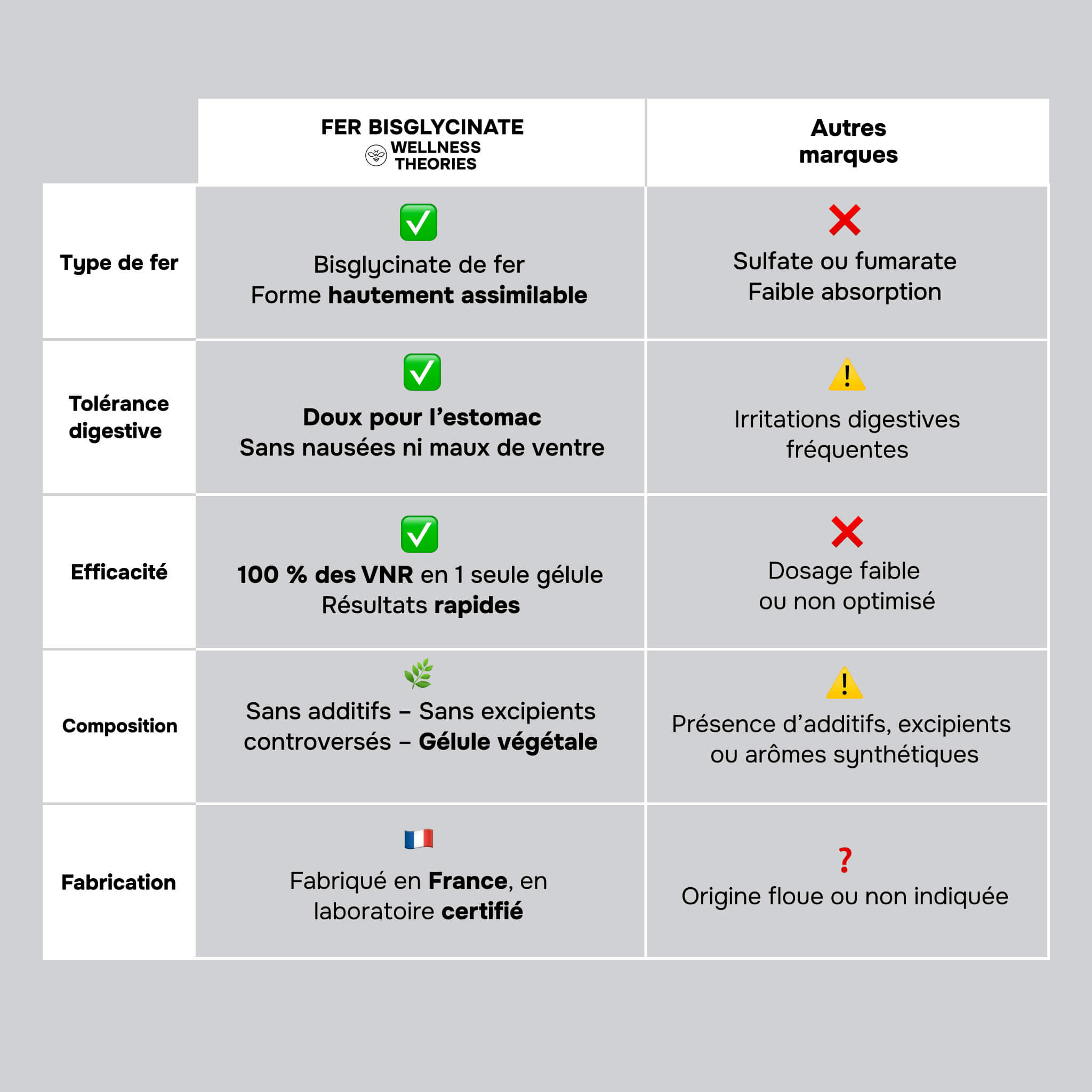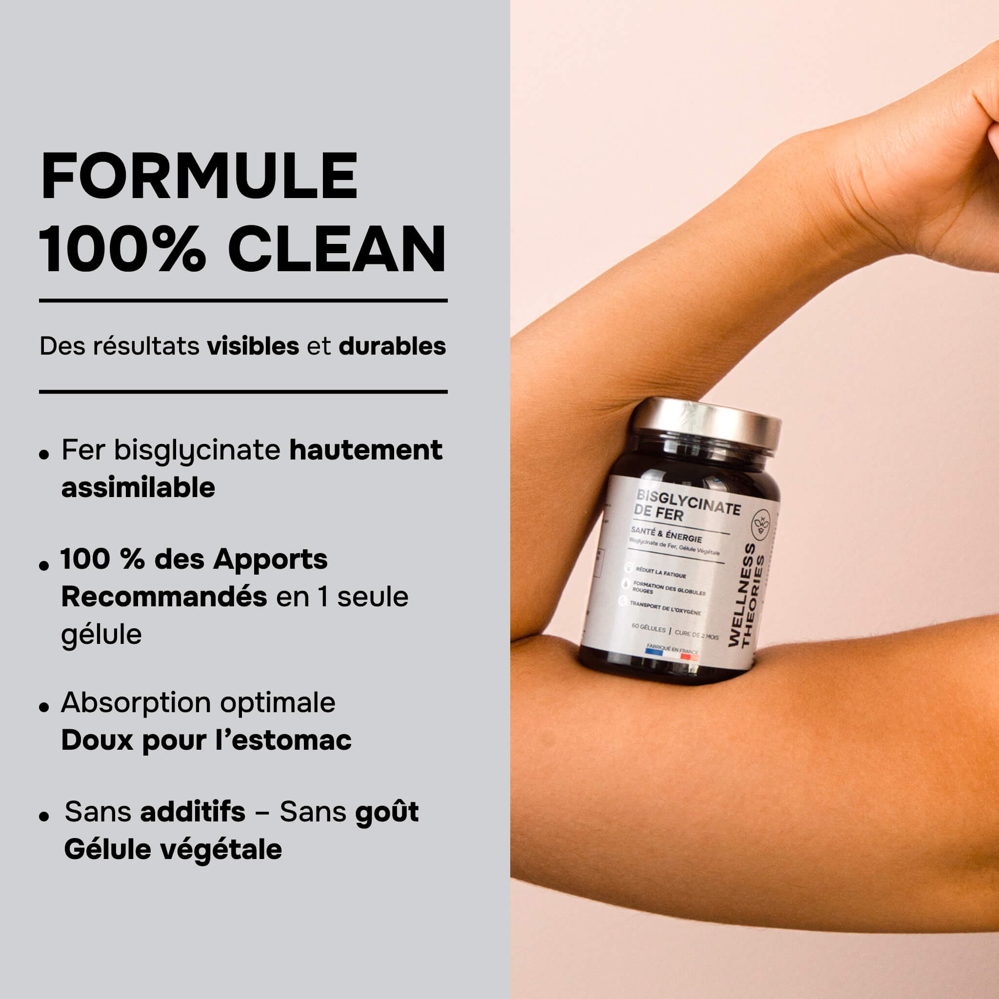 FER BISGLYCINATE – Énergie, Immunité & Fatigue – 60 Gélules Vegan – Cure de 2 Mois – Made in France