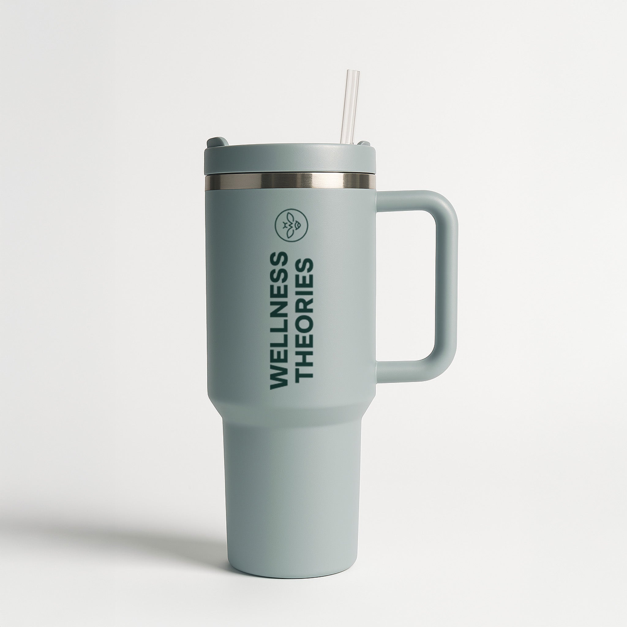 WELLNESS THEORIES - Mug Isotherme avec Paille 1.2L – Acier Inoxydable - Bleu