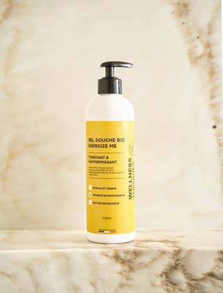 - Gel douche BIO ENERGIZE ME – Utilisez-le chaque matin sous la douche pour réveiller les sens et tonifier le corps grâce à ses huiles essentielles revitalisantes.